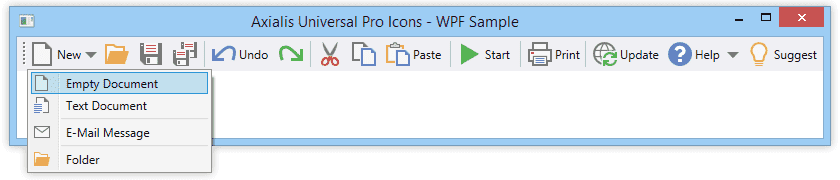 TEST IS LIVE! Click here to download the Sample Application (74 Kb, requires .NET 4.5 framework) and make it run on your computer. The main toolbar was populated with large images (aligned on 24x24 pixels) and menus with small images (16x16 pixels). This alignment produces a pixel perfect result. Download the zip file file, unpack it in a folder and launch AxialisUniversalPro-WpfSampleApp.exe.