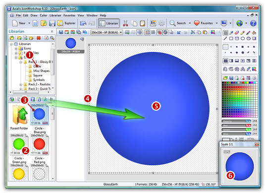). You can change the background lightness of the Scale 1:1 window simply by clicking in it using the left button of the mouse. This will allow you to see how the icon is displayed on different backgrounds with different lightness settings.