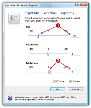 12. Set the Hue to "-100" either using the slider or by typing the value (